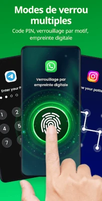 Avec Verrou d'applis, sécurisez vos applications et protégez efficacement votre vie privée. Verrouillez l'accès à vos données sensibles d'un simple clic grâce à un code PIN, un modèle de déverrouillage ou votre empreinte digitale. Une protection complète pour votre téléphone.