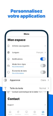 Conçue pour s'adapter à votre rythme de vie, Euronews met l'information à portée de main, 24 heures sur 24. Explorez la sélection de notre rédaction des faits marquants mondiaux, parcourez une chronologie constamment mise à jour des dernières nouvelles et des reportages inédits, ou revisitez vos émissions préférées telles que No Comment, The Europe Conversation et European Stories via notre vidéothèque. L'expérience de lecture est optimisée grâce à un mode sombre, idéal pour le confort visuel. De plus, nos fonctionnalités intelligentes vous permettent de maîtriser votre consommation de données mobiles et de consulter les articles hors connexion, même en mode avion, assurant ainsi une flexibilité totale, où que vous soyez.