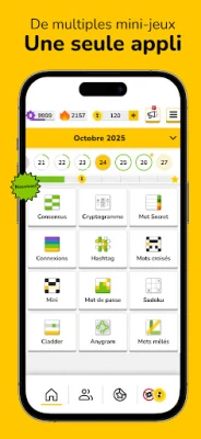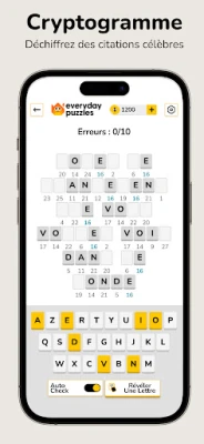 Plongez dans un univers stimulant où l'esprit est roi et les mots sont des joyaux. Everyday Puzzles transforme votre quotidien en une aventure intellectuelle, vous offrant une collection inégalée de jeux de mots et de casse-têtes. Retrouvez une douzaine de formats variés incluant l'intrigant CONSENSUS, où vous devinez les réponses populaires, le mystérieux MOT SECRET, le classique CRYPTOGRAMME, l'ingénieux ANYGRAM et le palpitant HASHTAG. Que vous soyez un aficionado des grilles traditionnelles avec les MOTS CROISÉS ou un stratège des chiffres avec le SUDOKU, Everyday Puzzles est votre destination unique pour un divertissement quotidien et une stimulation cérébrale garantie.