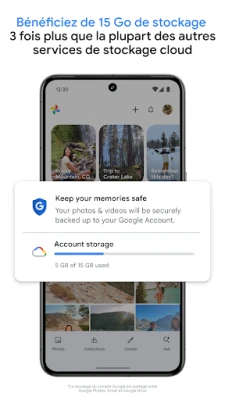 Découvrez Google Photos, l'espace ultime pour chérir et protéger l'intégralité de vos souvenirs visuels. Chaque compte Google vous offre généreusement 15 Go d'espace de stockage cloud gratuit*, bien plus que de nombreux services concurrents, assurant une sauvegarde automatique et sécurisée de toutes vos photos et vidéos. Finis les tracas liés au manque d'espace sur votre téléphone ; libérez instantanément de la mémoire sur votre appareil en toute confiance, sachant que Google Photos conserve précieusement chaque instant en toute sécurité, protégé par une infrastructure de sécurité avancée et fiable.