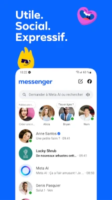 Messenger : connectez-vous gratuitement avec le monde entier. Gardez le contact avec vos proches, trouvez des personnes partageant vos centres d'intérêt et développez votre communauté. Exprimez-vous et partagez votre humeur sans limites, où que vous soyez. Une communication enrichie pour tous.