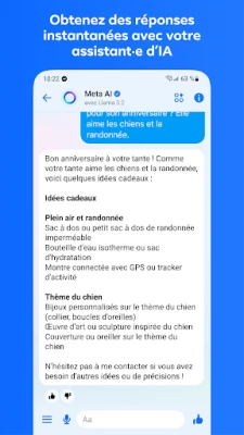 Découvrez la puissance de l'innovation avec Meta AI*, votre assistant intelligent intégré à **Messenger**. Obtenez des réponses instantanées, des conseils, une aide pour vos devoirs, et libérez votre créativité en générant ou modifiant des images, transformant vos idées en réalité. Exprimez votre personnalité en personnalisant vos discussions avec une vaste gamme de thèmes, de stickers animés, de GIFs et de réactions qui donnent vie à chaque échange. Partagez les faits marquants de votre journée via les Stories qui s'évanouissent après 24 heures, ou diffusez rapidement vos pensées dans des Notes. **Messenger** vous ouvre également les portes de vos communautés, écoles et groupes d'intérêts, et vous permet d'entrer dans le cercle restreint de vos créateurs préférés en rejoignant leurs canaux pour un contenu exclusif et informel.