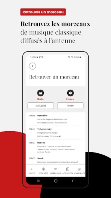 Plongez au cœur de l'univers sonore et intellectuel avec Radio Classique, votre portail unique vers l'excellence. Vibrez au rythme de la diffusion en direct, enrichie d'une interaction inédite avec vos animateurs favoris comme Franck Ferrand ou Pauline Lambert. Ne manquez jamais l'occasion de connaître instantanément le titre de l'œuvre diffusée, son compositeur et ses interprètes, puis retrouvez aisément cette information précieuse à tout moment pour approfondir vos découvertes musicales. C'est une immersion complète, où l'émotion de la musique classique rencontre la vivacité de l'échange.
