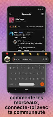 Connectez-vous à une communauté mondiale de passionnés et d'artistes. Suivez vos créateurs favoris, échangez avec d'autres auditeurs et plongez dans leurs sélections musicales secrètes. Interagissez directement avec la musique que vous aimez : likez, repartagez et commentez vos découvertes, puis partagez-les sans effort avec vos amis. Pour les créateurs, SoundCloud offre une plateforme pour propulser votre propre musique devant une audience avide de nouveauté, assurant que chaque écoute apporte un soutien direct aux talents qui donnent vie à la musique.